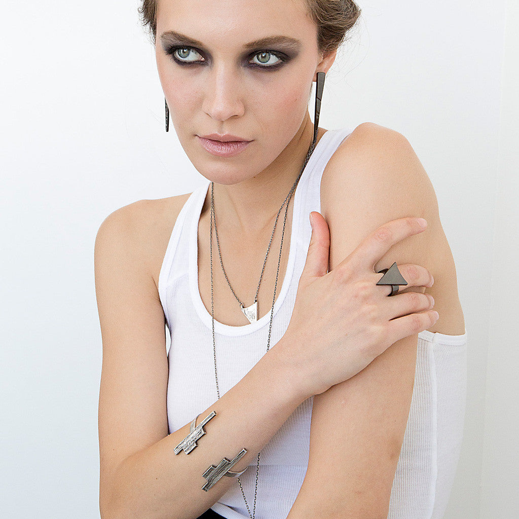 One-of-a-kind and limited-edition hand-carved walnut wood sculptures, home goods, and jewelry that merge organic primitive textures with the clean, angular lines of modern design.